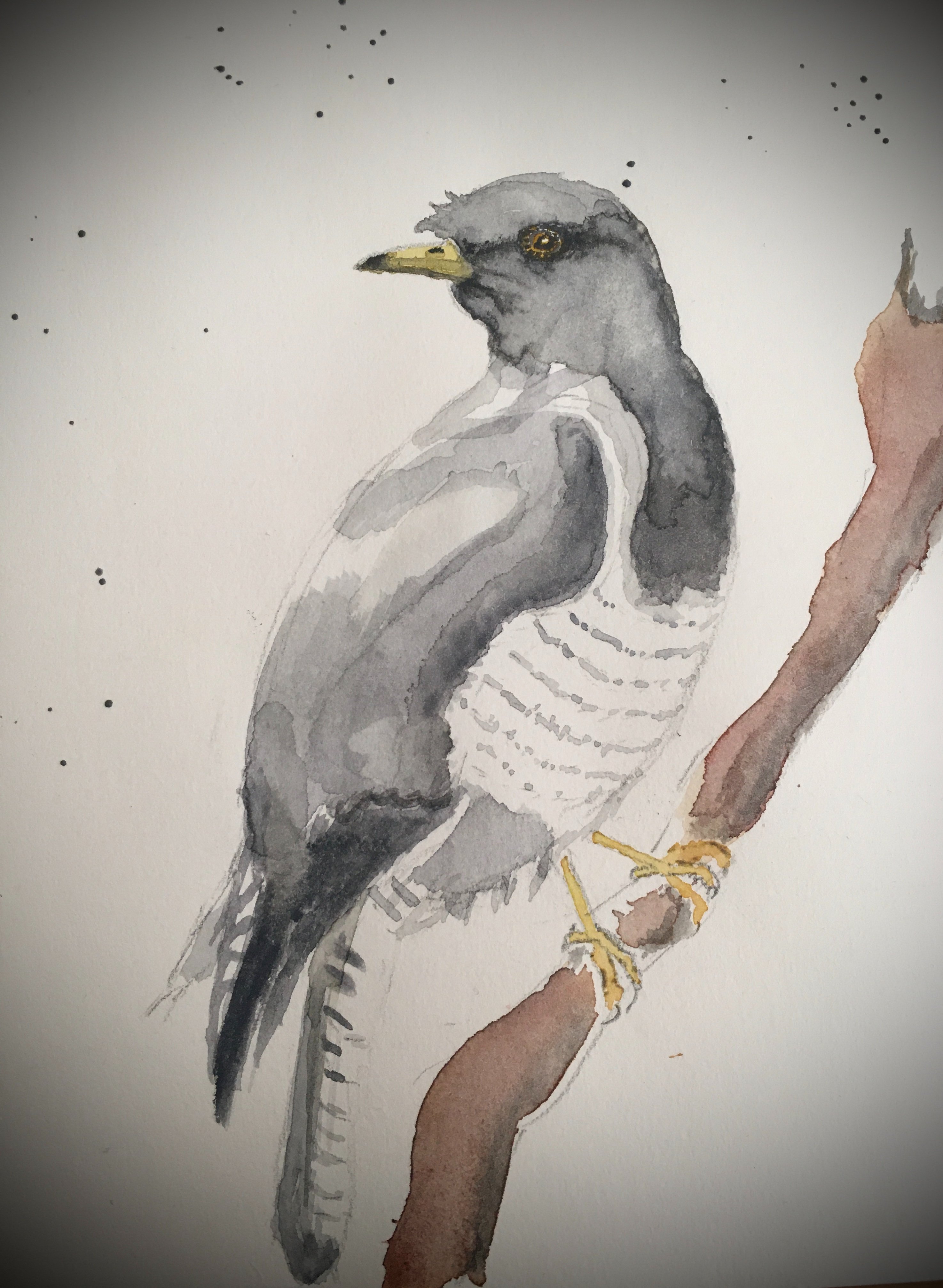Acrylic on wood panel. Rather a bird of prey. This is a beautiful line of birds each with their own vibrant colors to showcase.